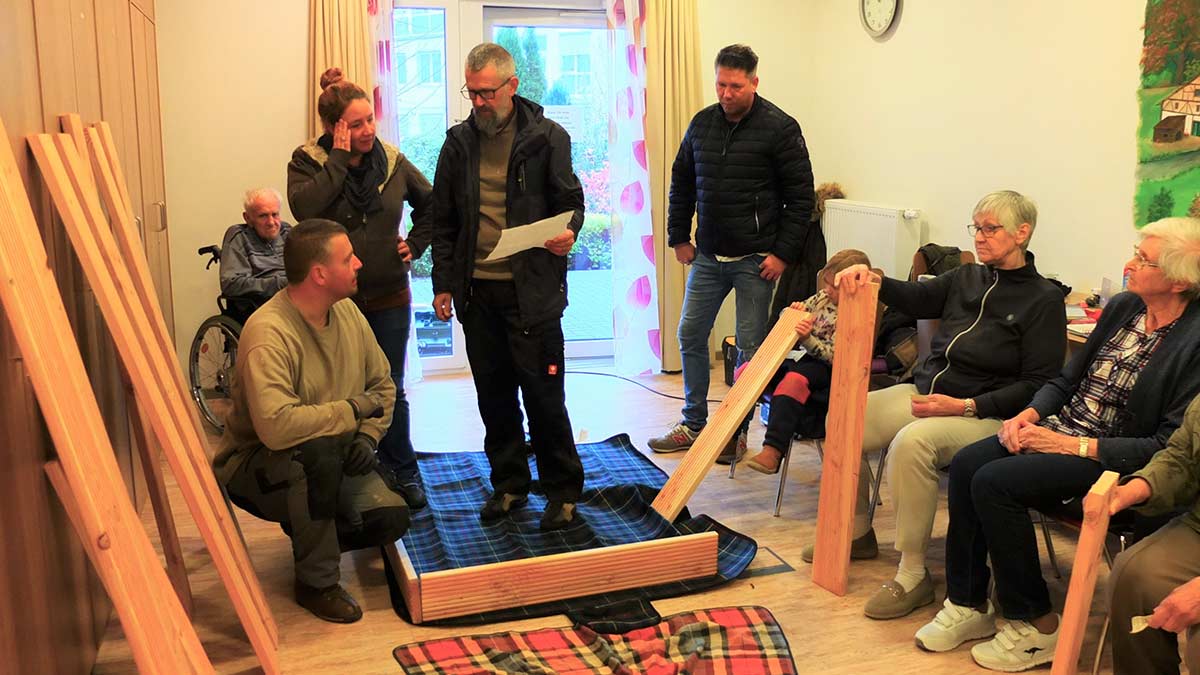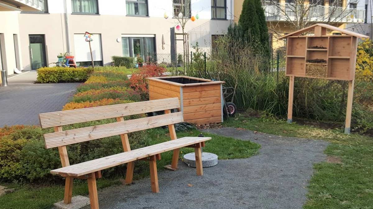 Dazu wurde im ersten Schritt eine neue Prachtwiese mit vielen bunten Blumen gesät. Weiter baute der Verein ein Hochbeet, dass nun befüllt wird und im Frühjahr zum Pflanzen bereitsteht. Außerdem wurde eine Sitzbank aufgestellt, die bereits in den letzten Wochen ausgiebig von den Bewohner*innen getestet wurde. Damit auch Bewohner*innen mit Rollstühlen oder Rollatoren den neuen Garten nutzen können, wurde ein neuer Weg zur Bank und dem Hochbeet angelegt.