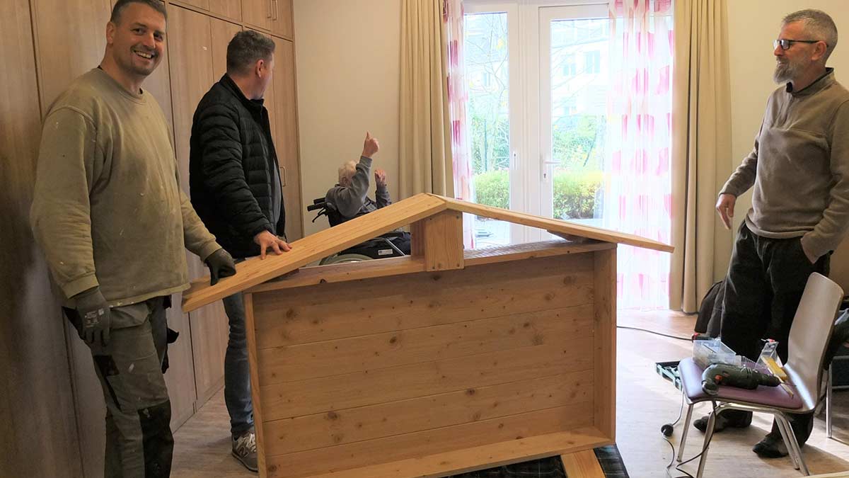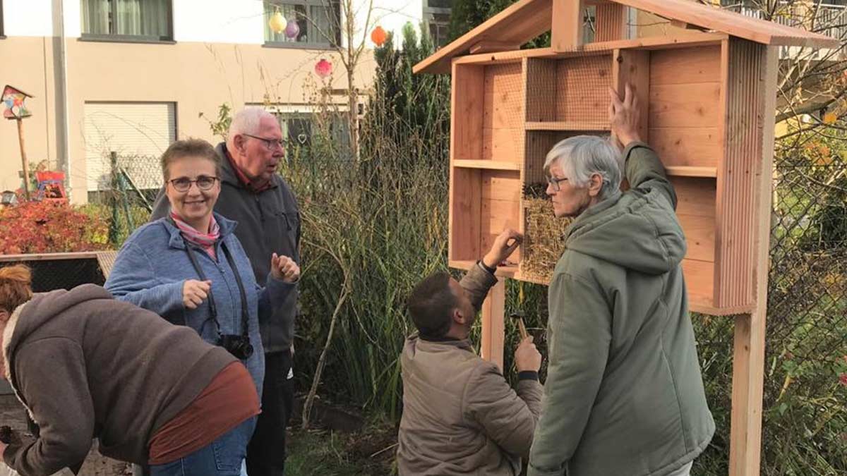Abschließend wurde im Herbst ein Insektenhotel zusammengebaut und aufgestellt. Die Bewohner*innen machten sich begeistert an die Arbeit und griffen den Vereinsmitgliedern und Mitarbeiter*innen tatkräftig mit an. Alle freuen sich schon auf den kommenden Frühling, wenn die Blumen zu blühen beginnen, das Hochbeet bepflanzt und das Insektenhotel gut besucht sein wird.