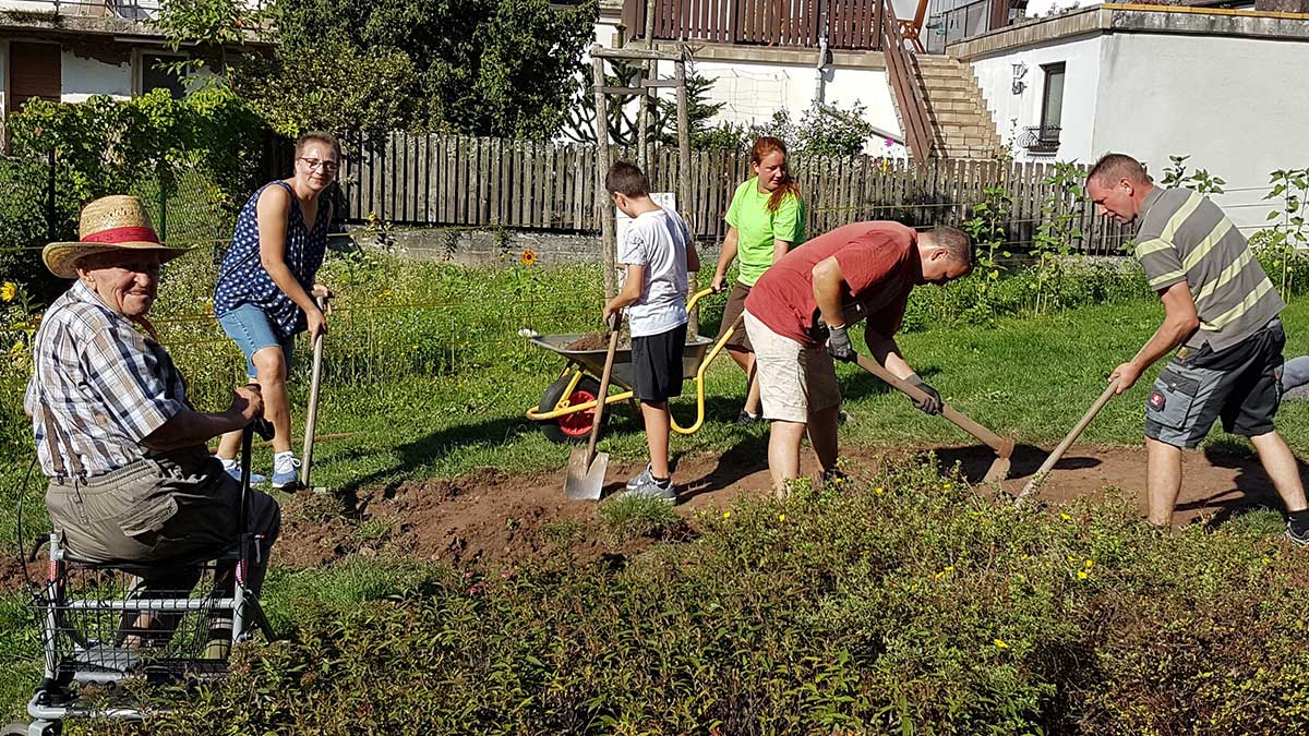 Ein großes Dankeschön gilt den Mitgliedern des Vereins „Gemeinsam für Altenglan e.V.“, die sich maßgeblich an diesem Projekt beteiligt und gemeinsam mit den Bewohner*innen und Mitarbeiter*innen viele Stunden verbrachten haben, um die neue Wiese zu gestalten. Der gemeinnützige Verein setzt sich für die Gemeinschaft von Altenglan ein, unterstützt örtliche Feste, sorgt für eine gelungene Vernetzung zu den Nachbarorten und veranstaltet jährlich beispielsweise einen Neujahrsempfang sowie eine Herbstwanderung. Vielen Dank!