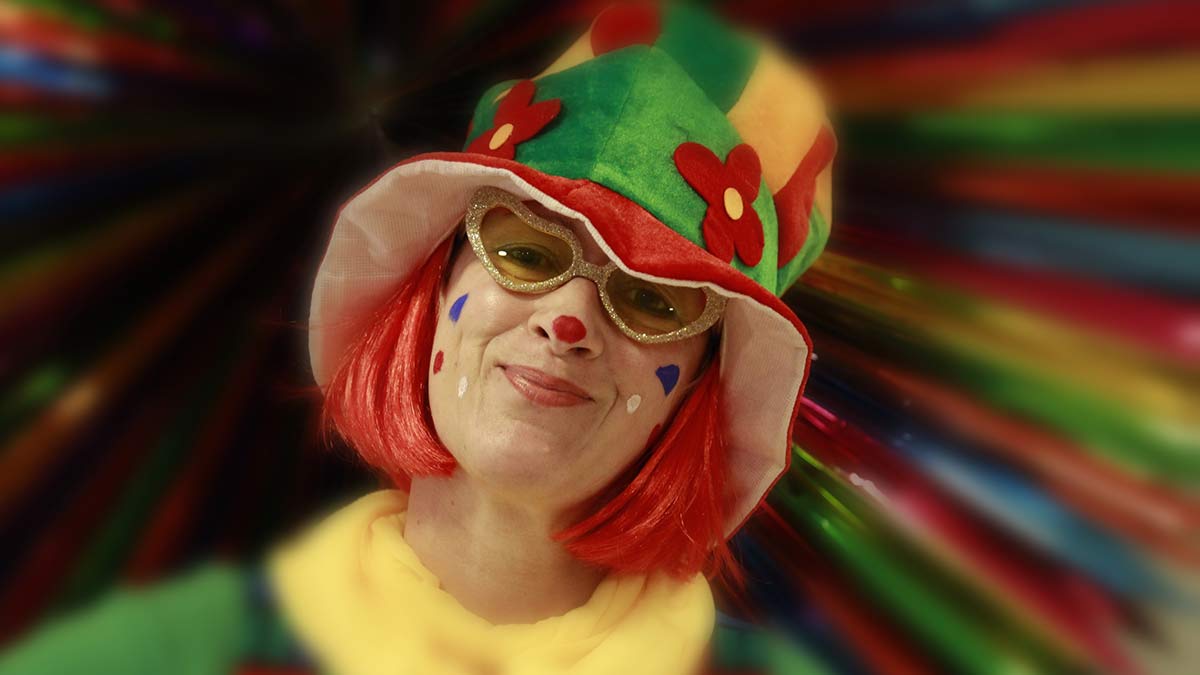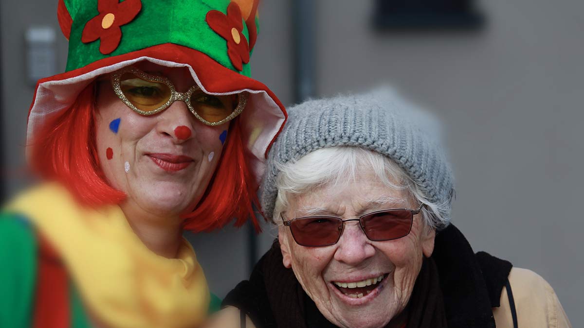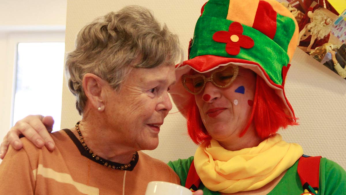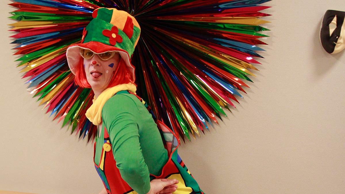 Mit guter Laune stolzierte Heike Gutensohn mit knallroten Haaren, angemaltem Gesicht, einem bunten Filzhut und einer bunten Latzhose durch die Einrichtung Haus im Glantal. Sie machte viel Quatsch mit den Bewohner*innen, stimmte Lieder an, machte Witze und es wurden kräftig Seifenblasen gepustet.
