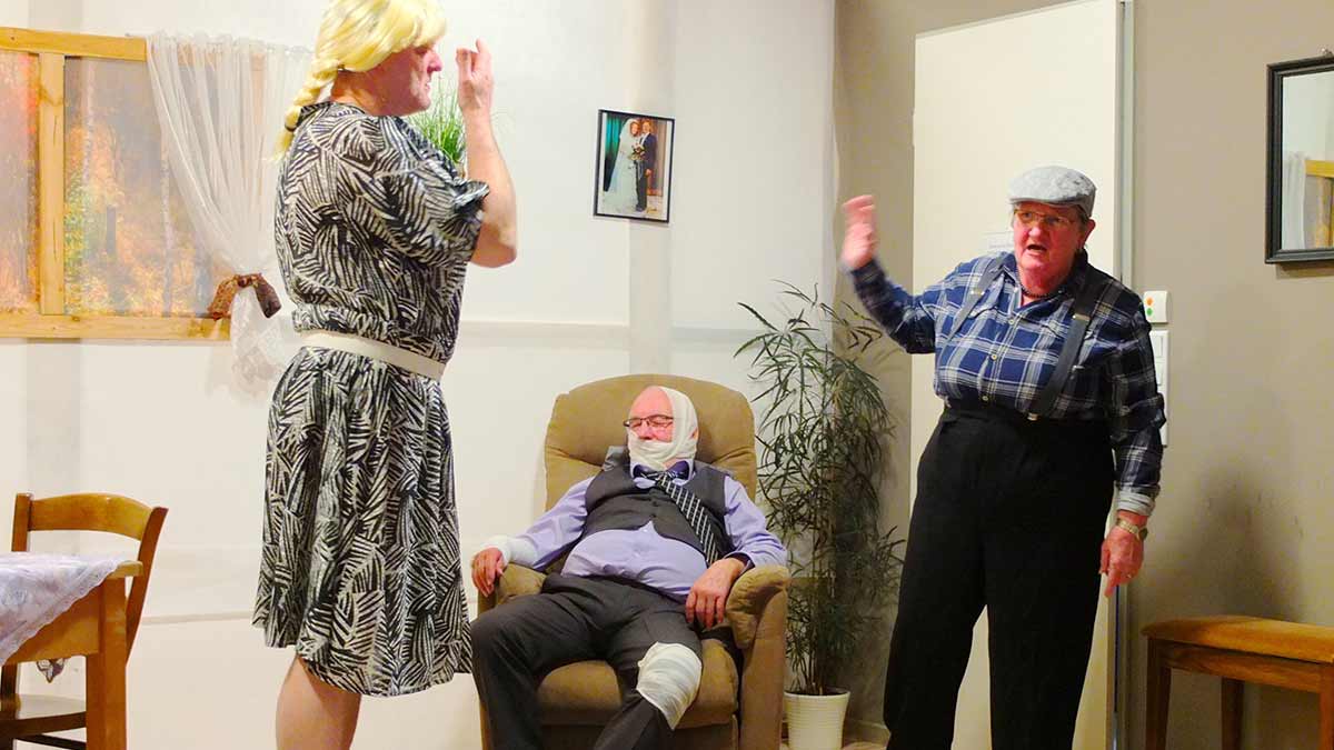 Im Haus im Glantal hieß es „Vorhang auf, Bühne frei!“. Zahlreiche Bewohner*innen versammelten sich Ende März Cafeteria der Einrichtung, um das Lustspiel „Sepp der Superknecht“ von der Blaubacher-Dorf-Theatergruppe zu sehen. Sogar im Flur standen theaterbegeisterte Bewohner*innen und Mitarbeiter*innen.