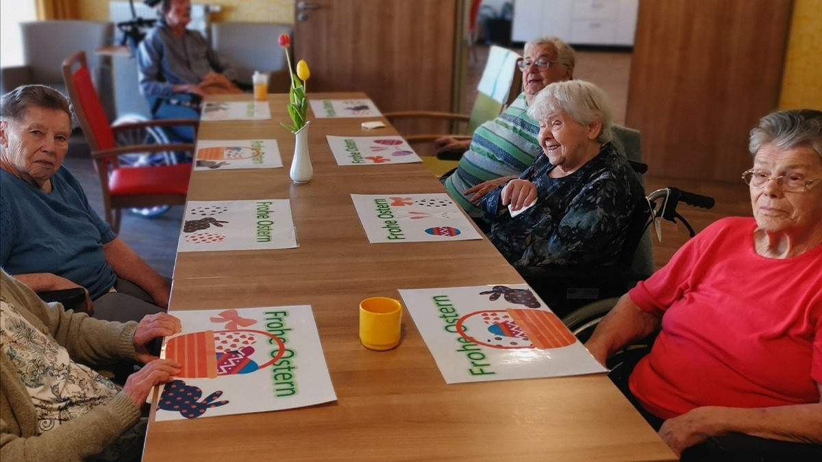 Die Bewohner*innen des „Haus im Glantal“ wurden wieder richtig kreativ und gestalteten aus schönen Ostervorlagen einfach wunderbare Tisch-Sets. Einlaminiert können sie sogar verkleckert werden und bleiben trotzdem noch schön. Da kann Ostern in Altenglan jetzt kommen!